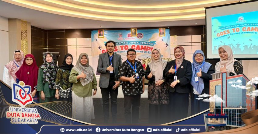 Universitas Duta Bangsa (UDB) Surakarta bersama Ikatan Akuntan Indonesia (IAI) Wilayah Jawa Tengah Komisariat Surakarta sukses menyelenggarakan kegiatan IAI Goes to Campus pada pukul 09.00 WIB bertempat di Ballroom 1, lantai 8 Gedung Rektorat UDB. Kegiatan ini dihadiri oleh 130 mahasiswa Program Studi Akuntansi serta para dosen Program Studi Akuntansi, Fakultas Hukum dan Bisnis.