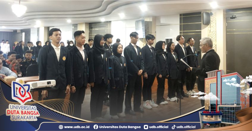 Rektor UDB Surakarta, Assoc. Prof. Dr. Singgih Purnomo, M.M., dalam sambutannya menegaskan bahwa organisasi mahasiswa merupakan wadah penting untuk mengembangkan kepemimpinan dan karakter generasi muda. “Kepemimpinan mahasiswa adalah laboratorium pembentukan karakter pemimpin masa depan. Pelantikan ini menjadi momentum bagi pengurus baru untuk menjalankan amanah dengan integritas, inovasi, serta komitmen demi kemajuan kampus,” ujarnya. Rangkaian pelantikan berlangsung secara formal, meliputi pembacaan ikrar dan sumpah jabatan, penandatanganan berita acara serah terima jabatan, serta prosesi penyerahan bendera organisasi sebagai simbol peralihan mandat kepengurusan.