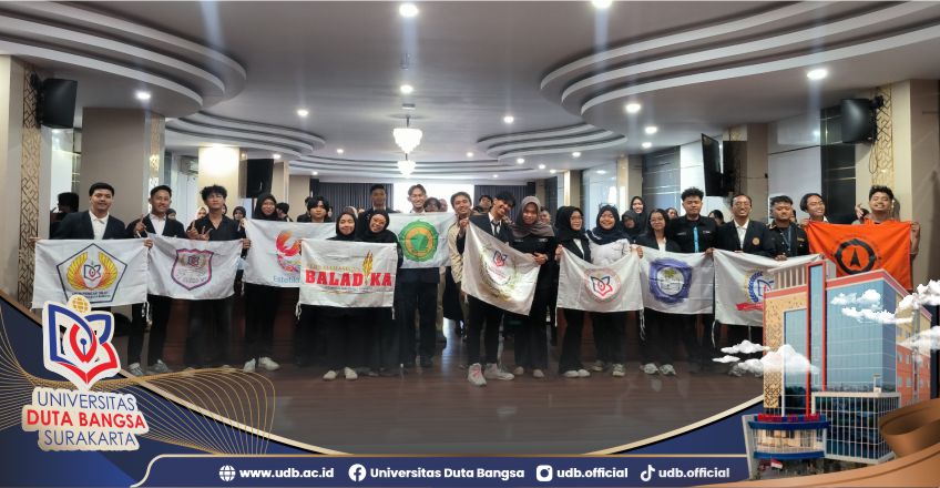 Surakarta – Universitas Duta Bangsa (UDB) Surakarta menggelar Pelantikan dan Serah Terima Jabatan Pengurus Organisasi Mahasiswa (Ormawa) Tingkat Universitas Duta Bangsa