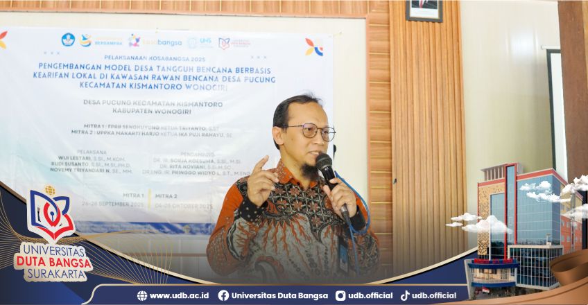 Wonogiri, 26–28 September 2025 – Program Kosabangsa 2025 resmi digelar di Desa Pucung, Kecamatan Kismantoro, Kabupaten Wonogiri. Kegiatan ini mengusung tema “Pengembangan Model Desa Tangguh Bencana Berbasis Kearifan Lokal di Kawasan Rawan Bencana”, bekerja sama dengan Forum Pengurangan Risiko Bencana (FPRB) sebagai mitra utama.